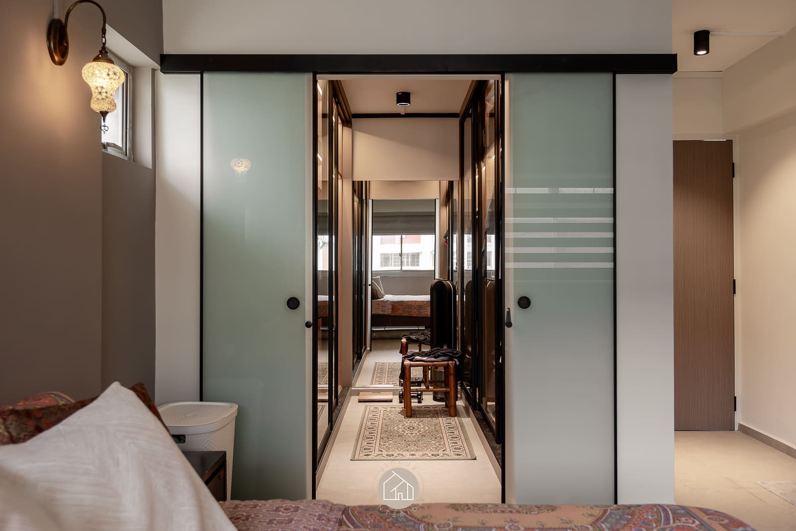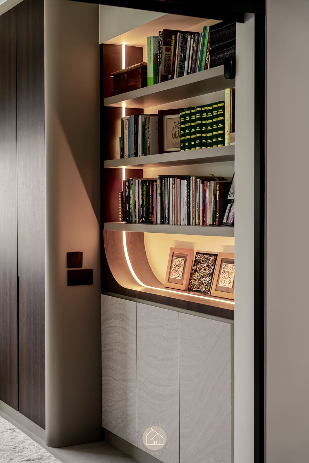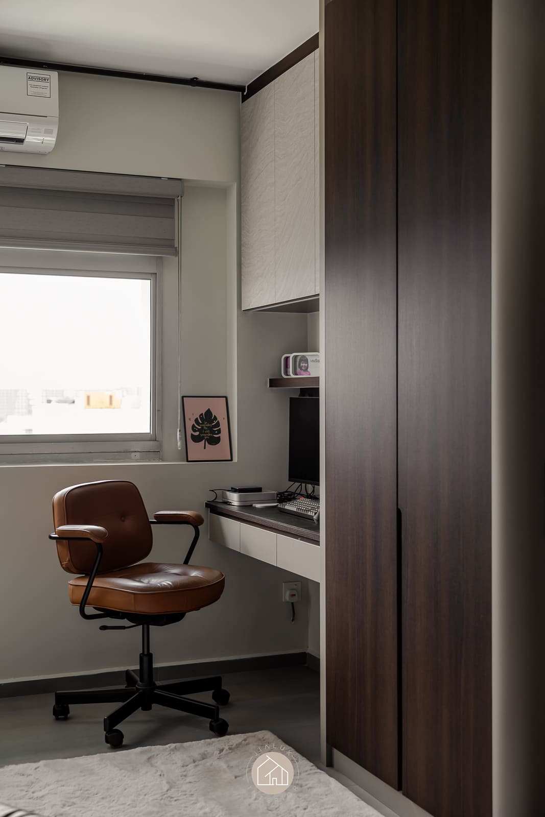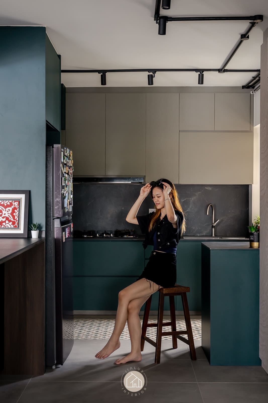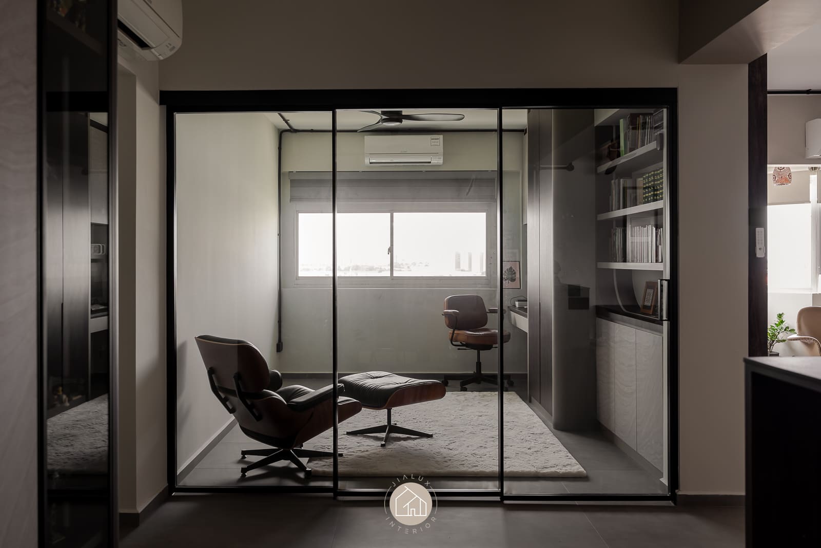 A combination of rustic textures and cool tones in the house Shifu creates a modern yet industrial feel theme.