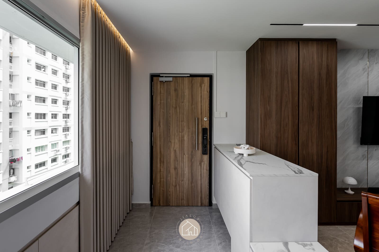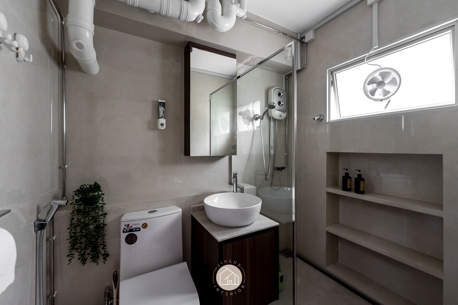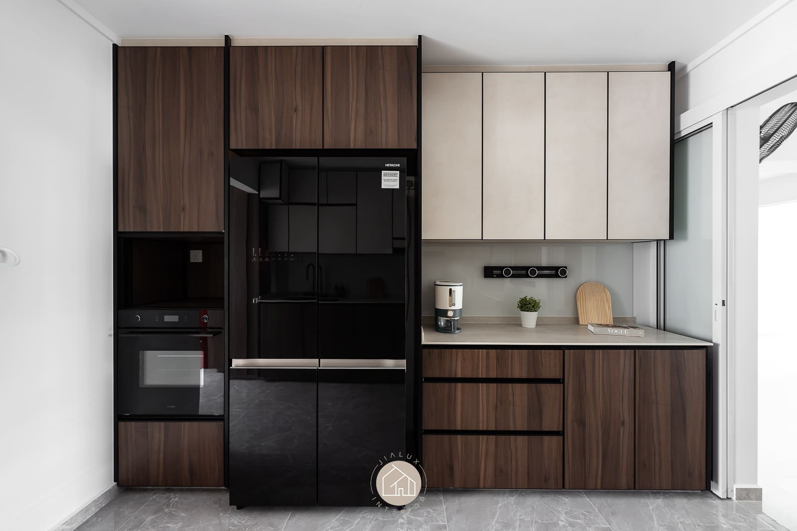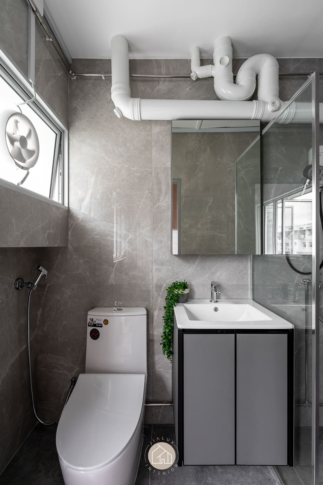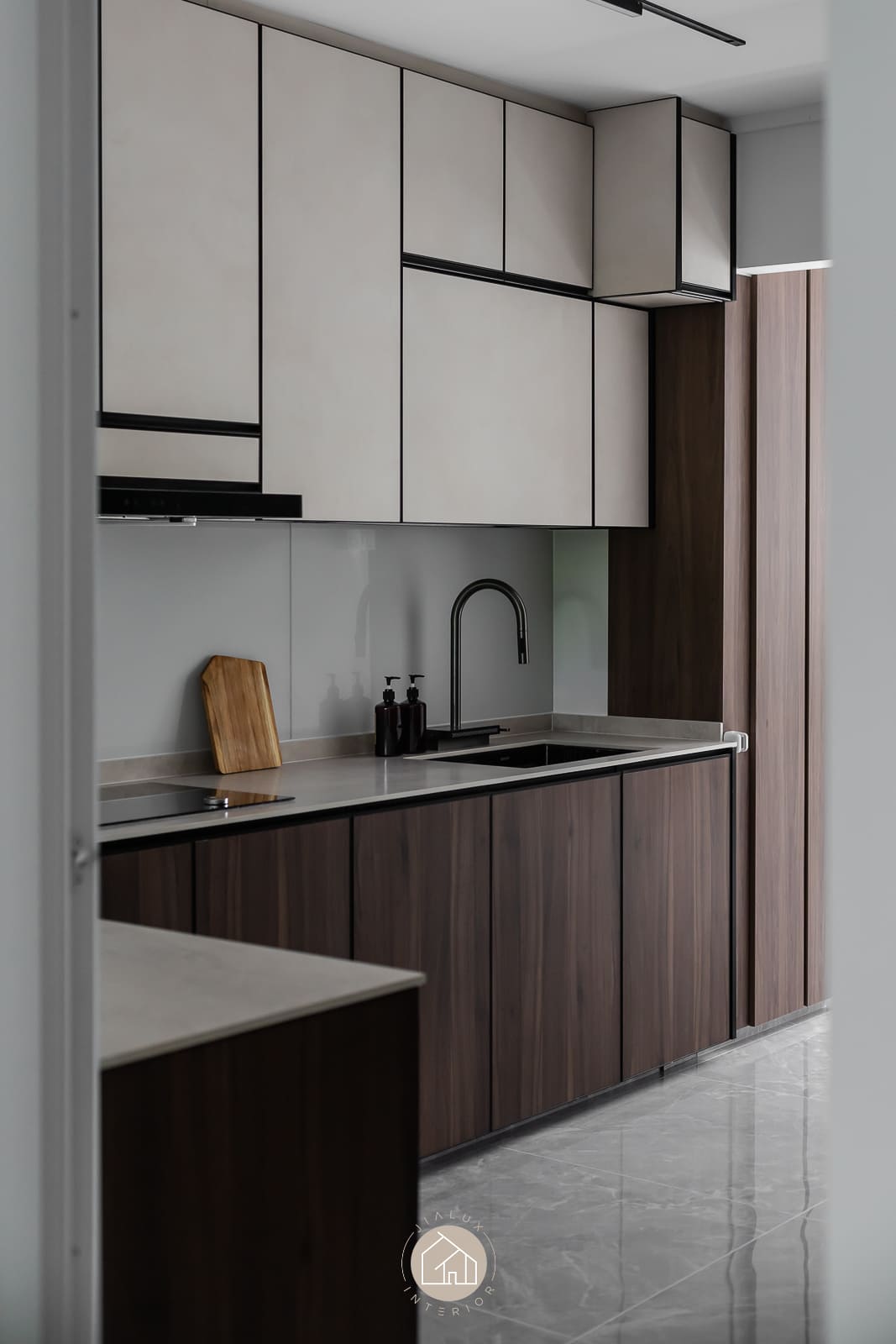 A blend of sleek grey tones and warmer finishes adds depth without making the interior feel heavy, creating a calm atmosphere that still feels welcoming and lived-in. With natural light and ventilation considered in the layout, the home stays bright, airy, and comfortable for daily routines, especially in key areas like the kitchen.