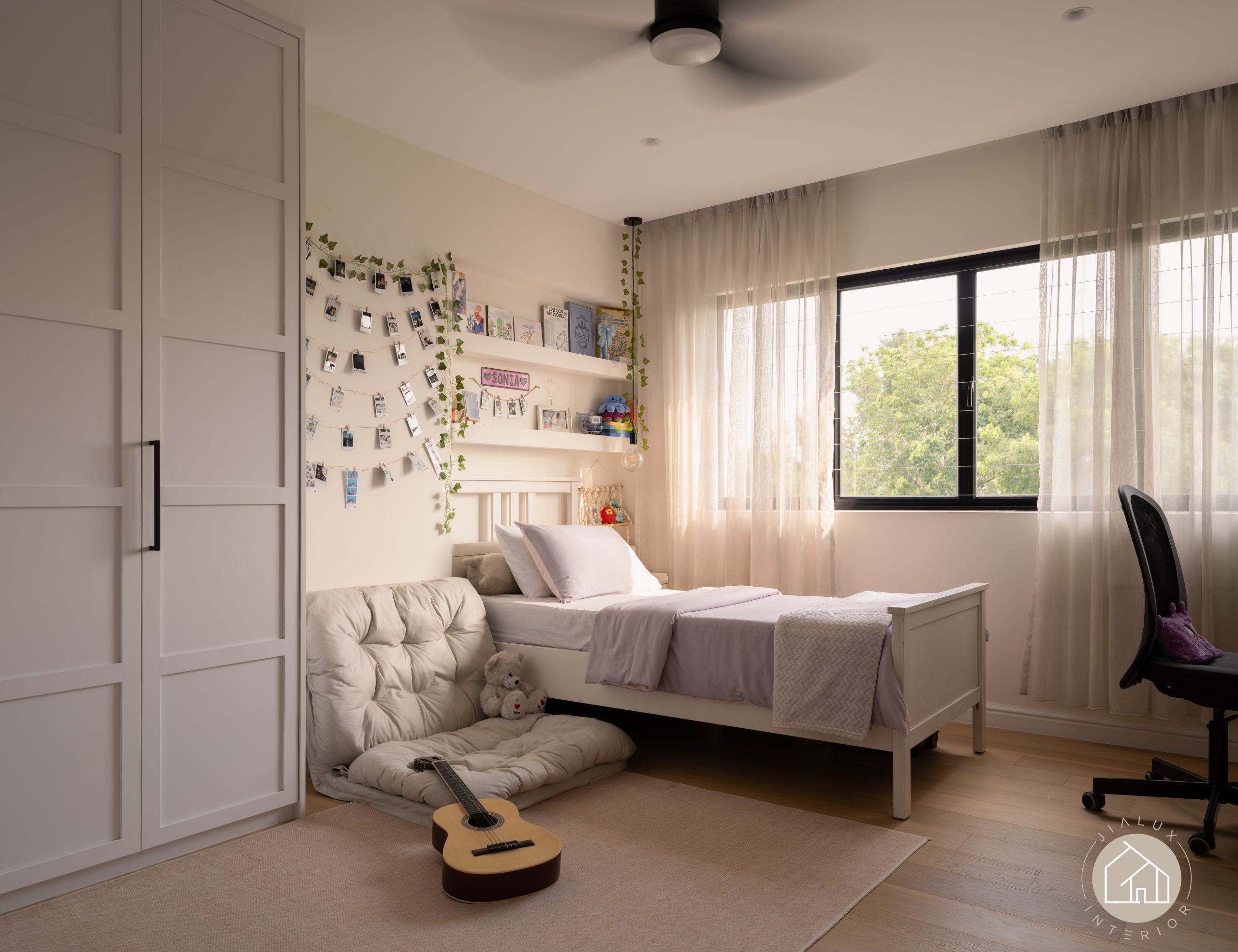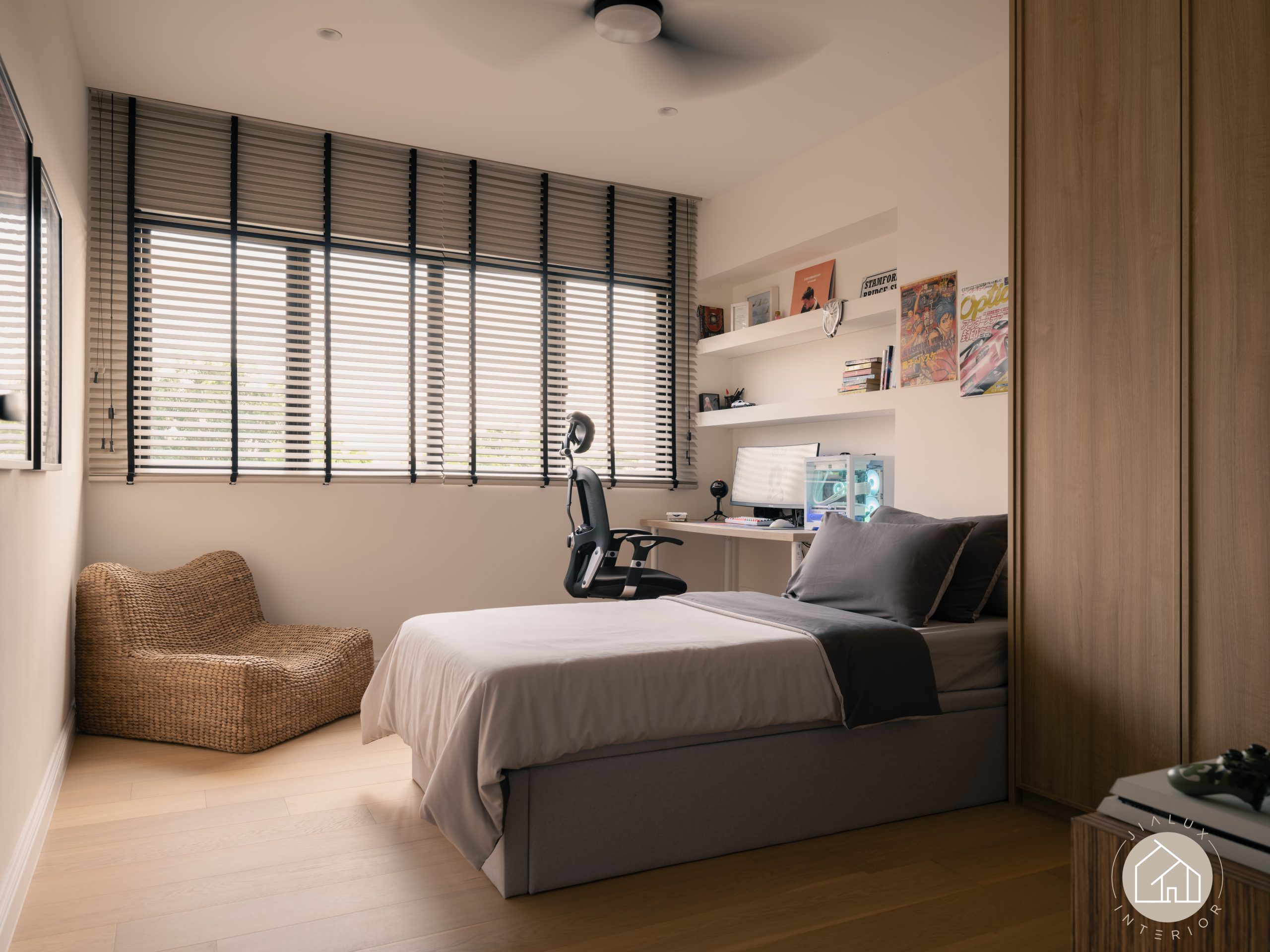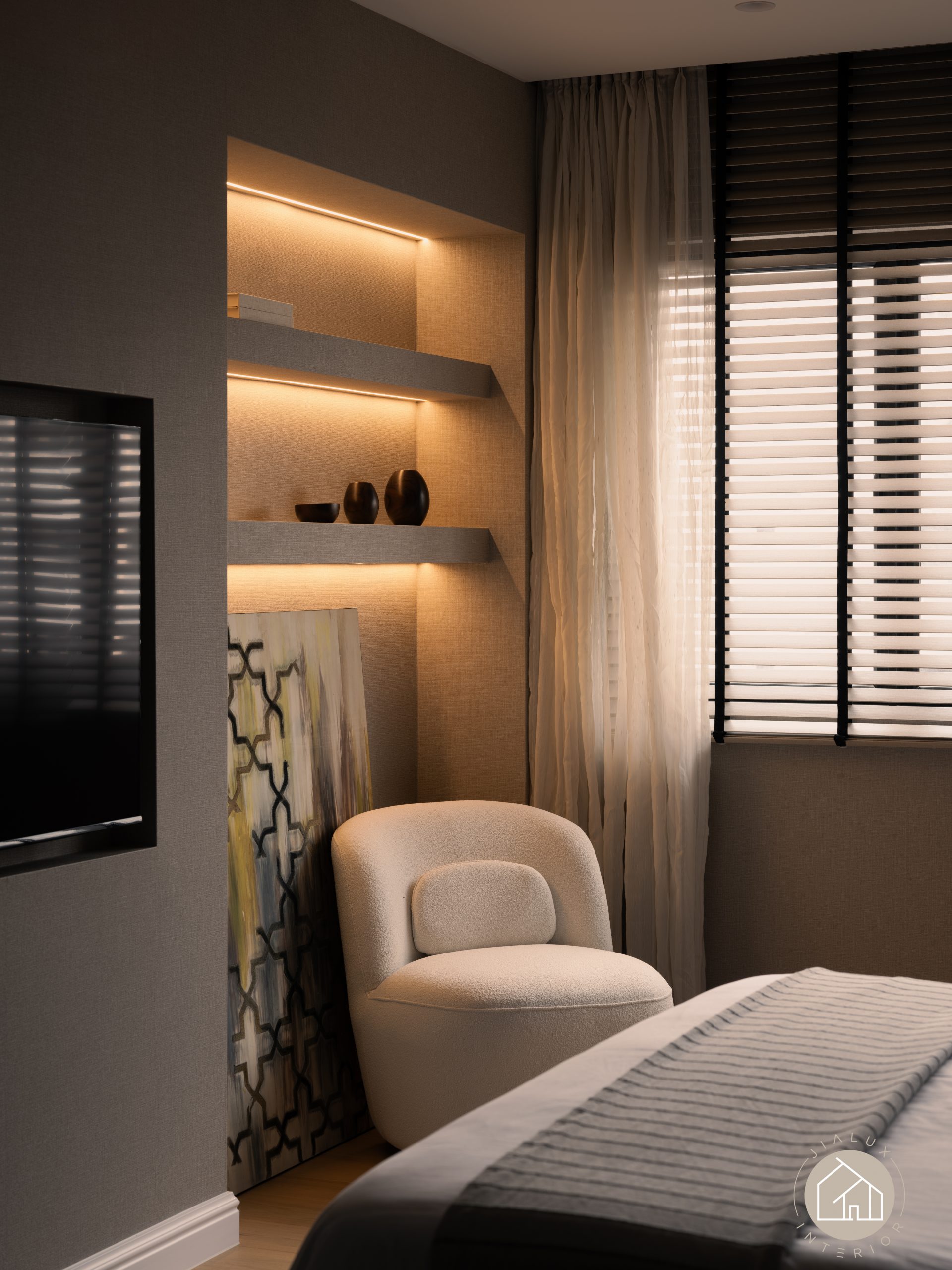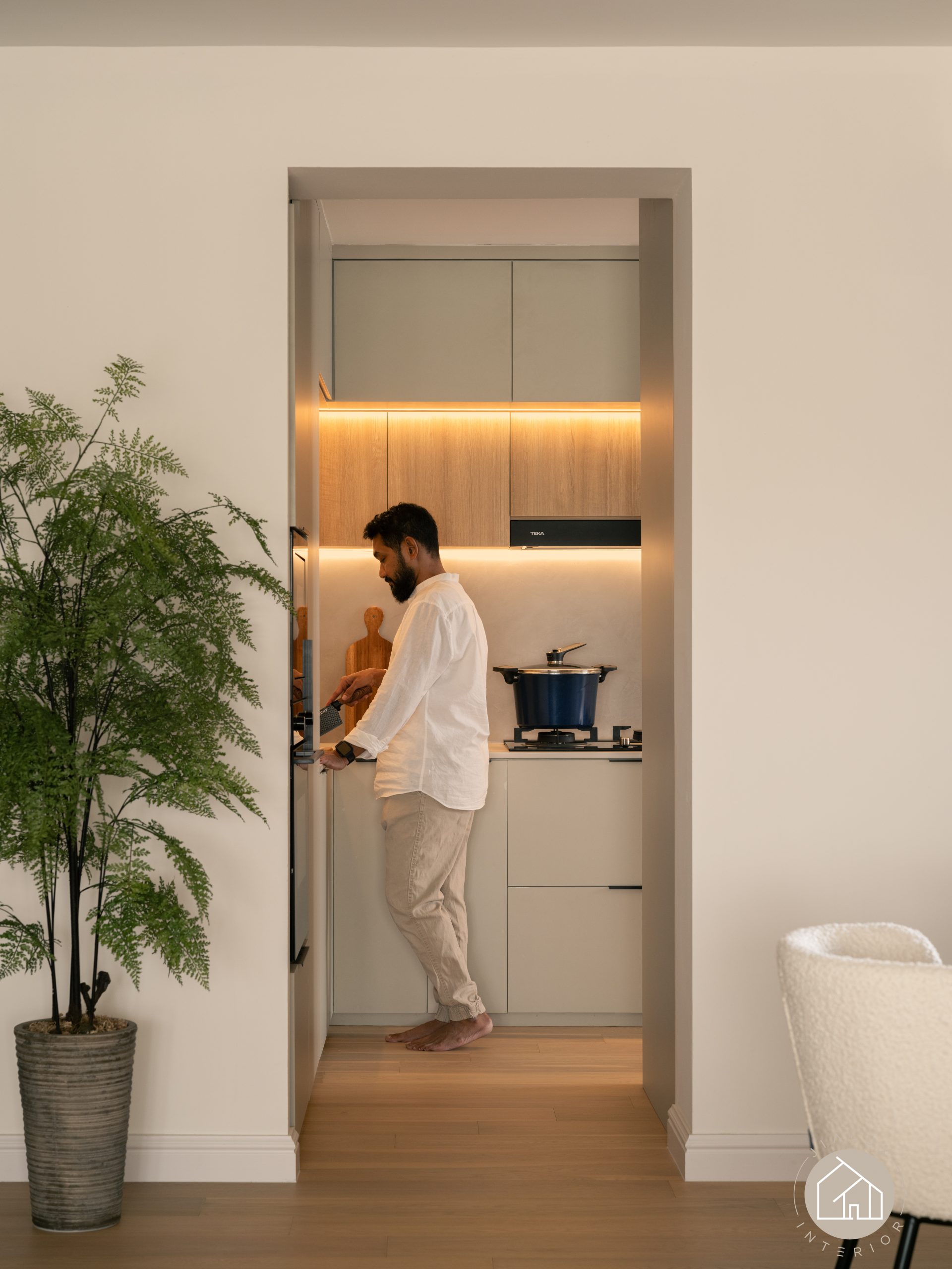 Step closer and the details do the talking. Built in carpentry keeps the visual noise low while still making room for display moments. The living room stays airy and balanced, the dining and kitchen connect seamlessly for everyday ease, and every corner feels considered, not crowded. Even the bathroom brings in a touch of personality through patterned tiles, while staying clean and timeless.