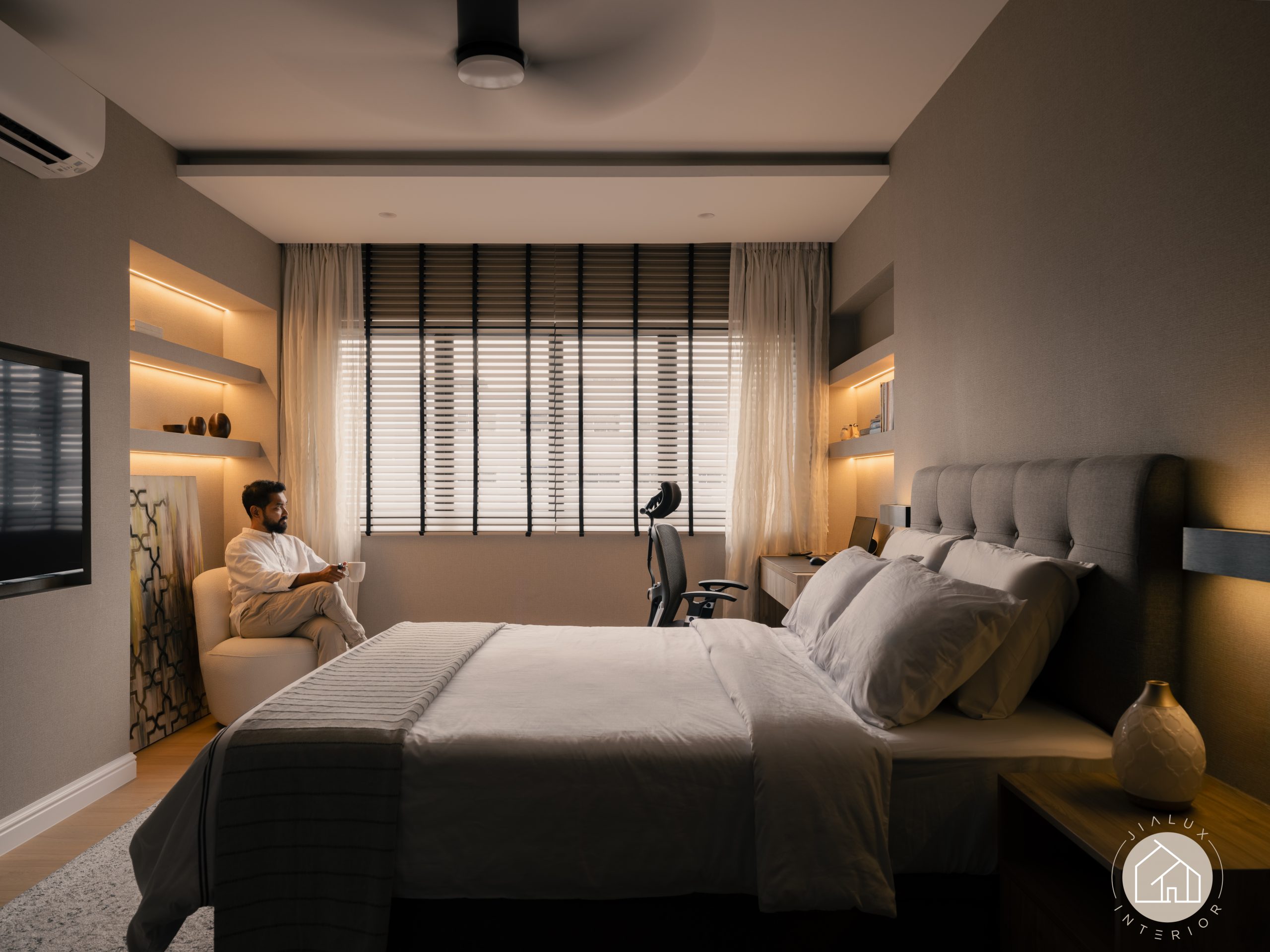 Here, warm timber tones, muted greens, and soft neutrals set the mood. Curves are used with purpose, from the arched feature wall to the rounded niches, adding that signature Mid Century personality without overwhelming the space. Layered lighting does the heavy lifting, cove glow, shelf lighting, and warm pendants that make the home feel cosy from day to night.